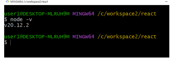- C드라이브 workspace에 react 폴더 만들고 Git bash (터미널) 열기