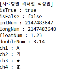 long longNum = 2147483648L; // 일반 정수값 == int(기본형)
