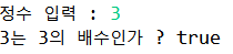System.out.printf("%d는 3의 배수인가 ? %b", input, isTrue);