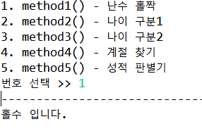 case 1 : method1() ; break; // 1 입력 시 method1() 호출