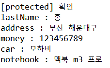 System.out.println("car : " + getCar() ); // private 필드를 간접 접근