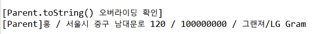 System.out.println("[Parent.toString() 오버라이딩 확인]");