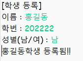 => 메뉴 번호 입력 시 아래와 같은 결과 출력