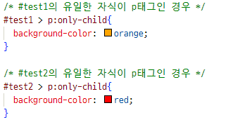 특정 요소의 자식 중 지정된 자식 요소가 딱 하나만 있을 때 선택