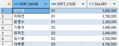 SELECT DEPT_CODE, EMP_NAME, SALARY