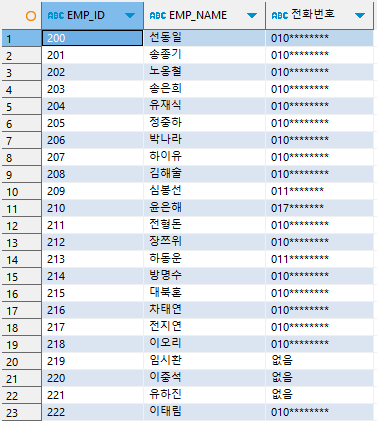 전화 번호가 없으면 '없음' / 전화 번호가 있으면 '010********' 형식으로 변경해서 조회